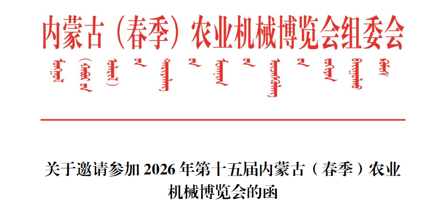 为深入贯彻党的二十大和二十届二中、三中全会精神,认真落实习近平总书记对内蒙古重要讲话重要指示批示精神,加快推进农牧业机械化向全程全面高质高效发展,助力乡村全面振兴。由内蒙古农牧业机械行业协会、内蒙古自治区经济发展与研究促进会主办,内蒙古东昭展览策划有限责任公司、东昭展览(北京)有限公司、内蒙古艺展会议展览有限公司承办的2026年第十五届内蒙古(春季)农业机械博览会,定于2026年3月26日?28日在内蒙古国际会展中心(呼和浩特市)举办。