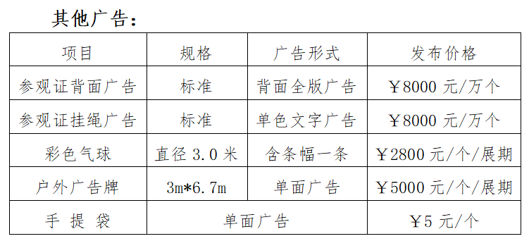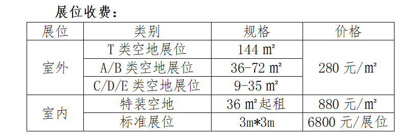 注:1、室外空地展位仅提供桌椅,装修搭建费用企业自理。